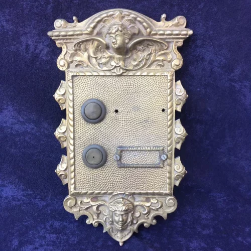 Klingelplatte Nr. 4 mit 2 Namensfelder Historismus Messing
