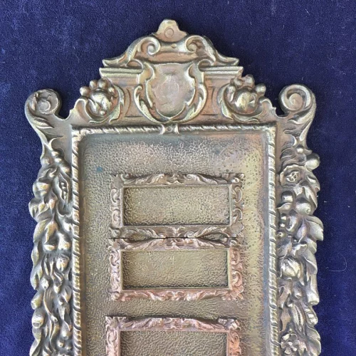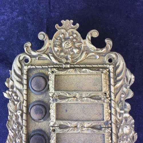 Klingelplatte Nr. 5 mit 4 Namensfelder Historismus Messing
