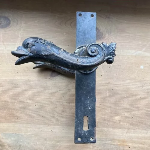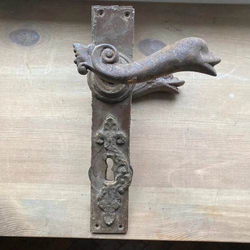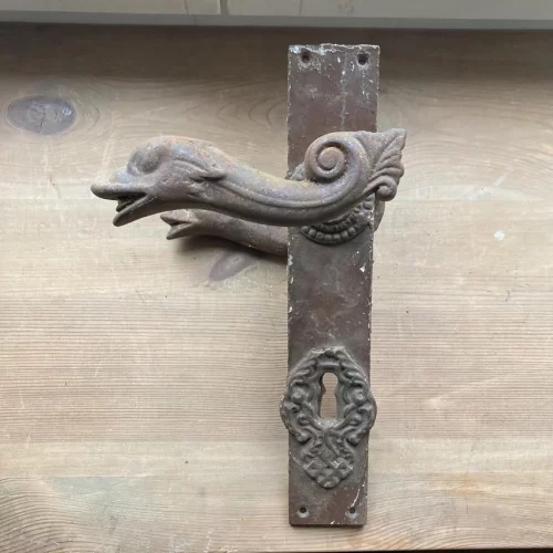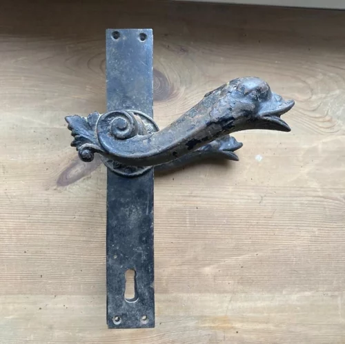 Gusseiserne Haustürdrückergarnitur Nr. 3 Delphinkopf