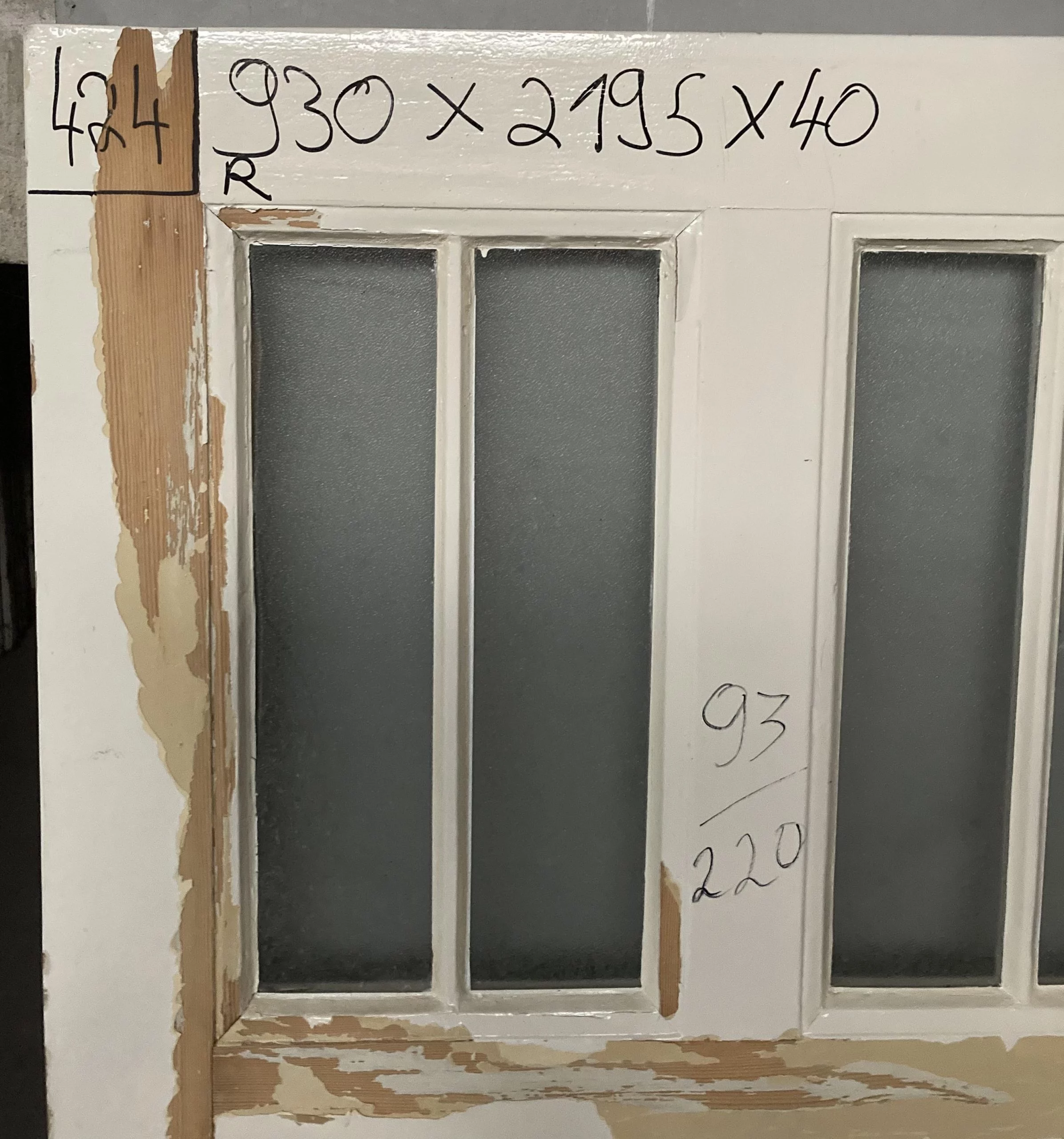 Zustand / Beschreibung: Guter zustand, Farbe Blättert ab, im oberen drittel Glaseinsatz mit vierer Aufteilung, vermutlich eine Küchentür aus der Belletage.