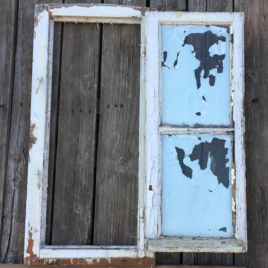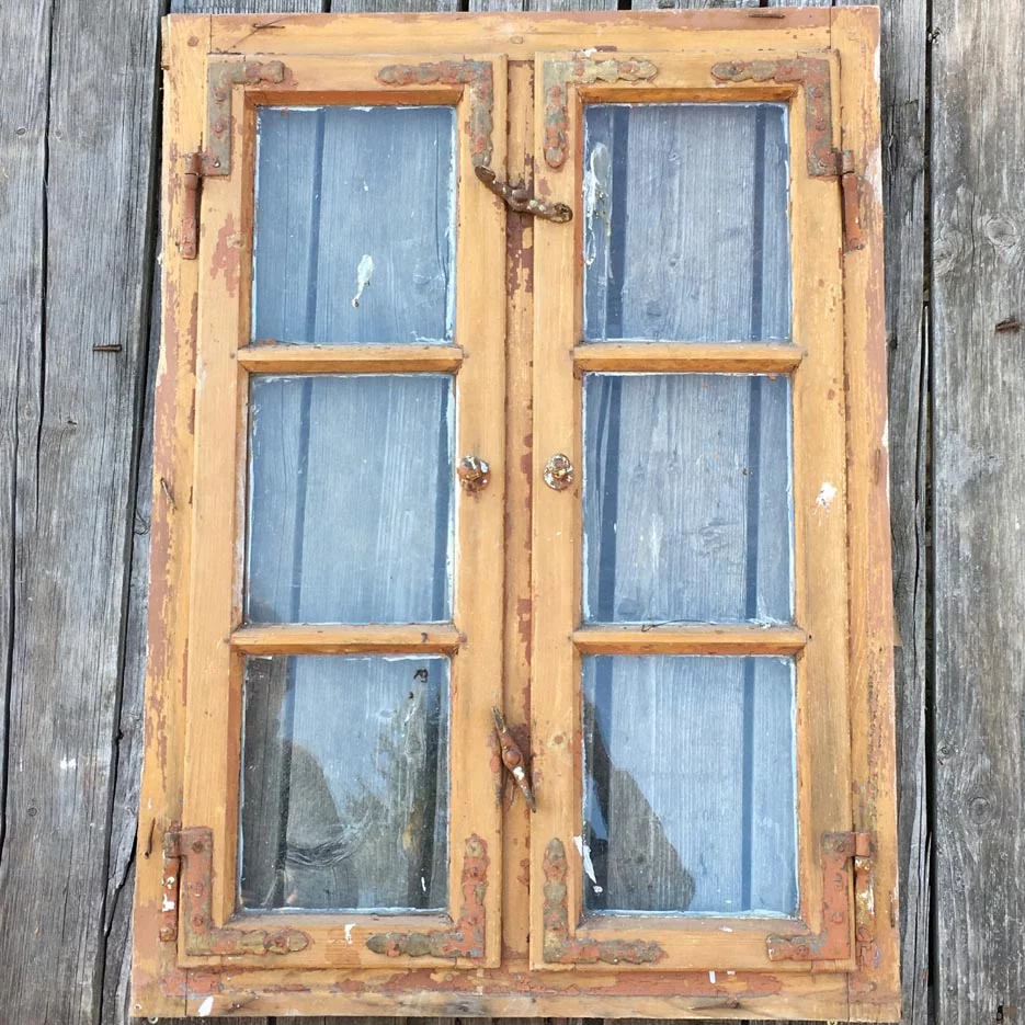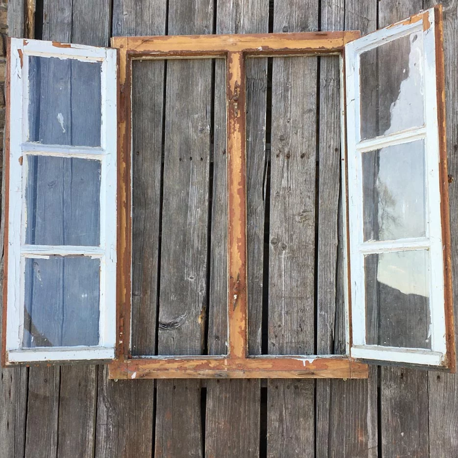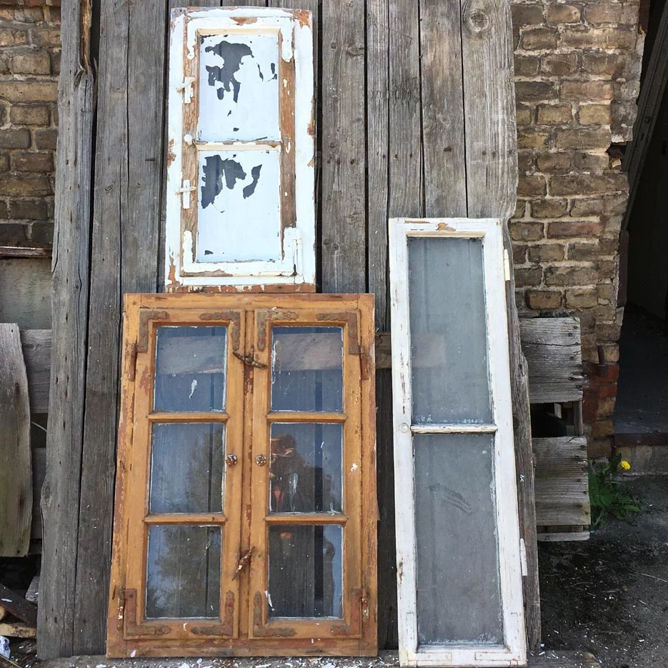 3 schöne alte Holzfenster mit Glaseinsatz.