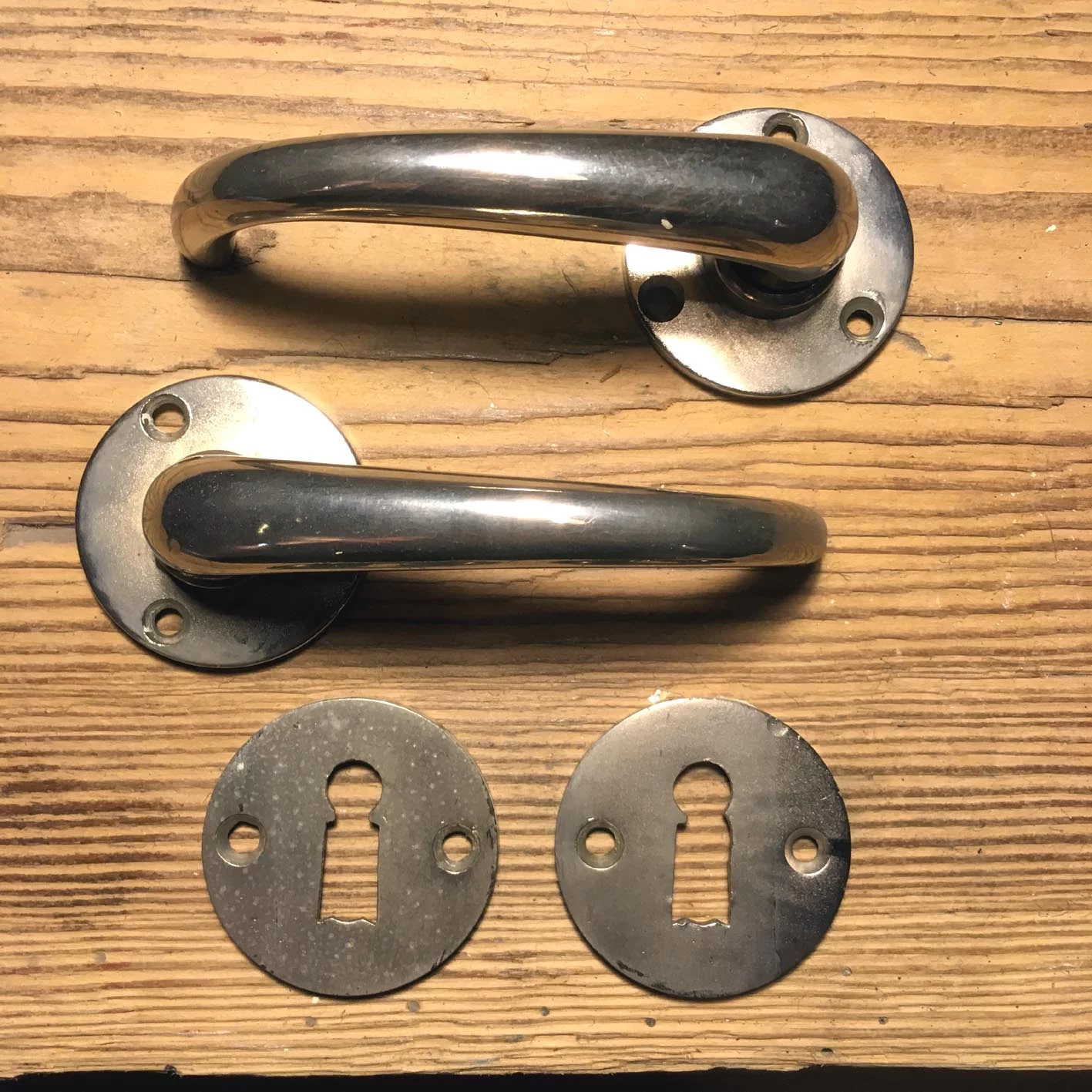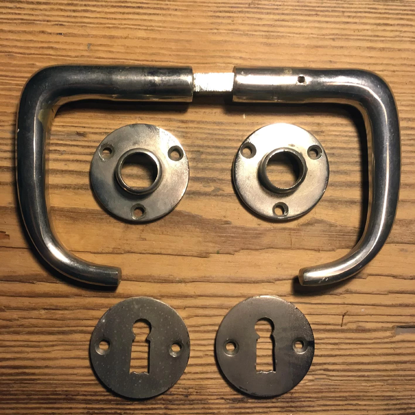 Original Bauhaus Drückergarnitur Vernickelter Messingguss Schlüsselloch / Rosette.