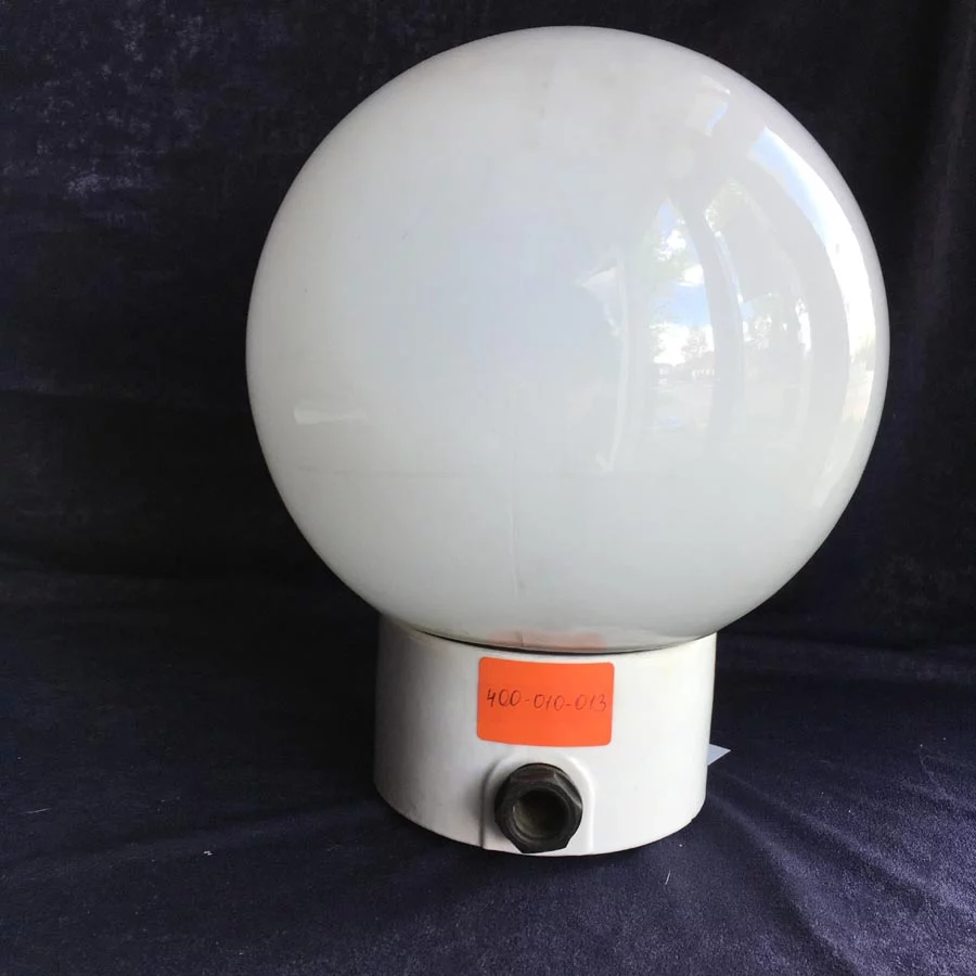Wand / Badezimmer Lampe Nr. 13/ Muster Bauhaus, Produktion 50 – 60er, elegante runde Form aus Porzellan mit Milchglas