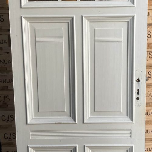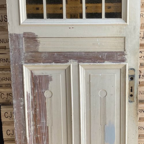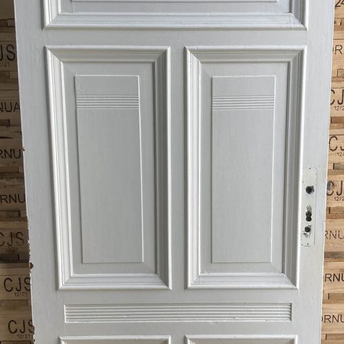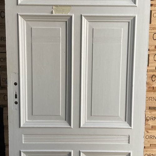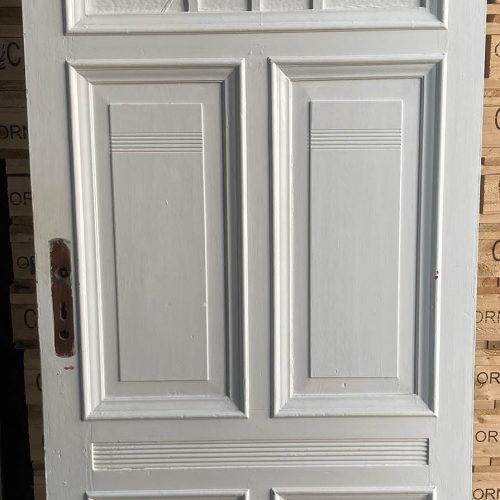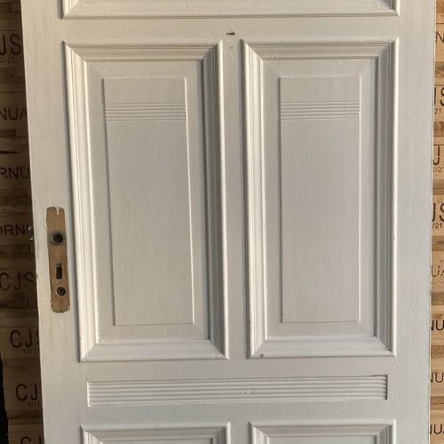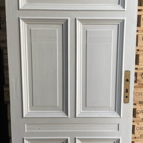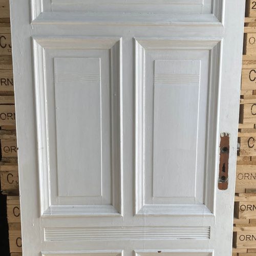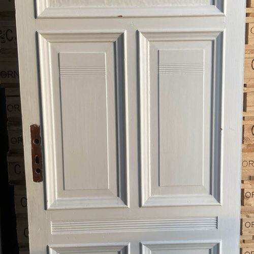 Zimmertür Nr. 488 Epoche: Gründerzeit Material: Kiefernholz Aufteilung: 6 Kassetten Fitschen / Türbänder: Links Glas: Ja Höhe / Länge: 2185 mm Breite: 935 mm Stärke / Dicke: 40 mm Zustand / Beschreibung: Guter zustand, Farbe Blättert ab, im oberen Aufteilung mit Glas. Gewicht: 50 kg Hier geht es zurück zur Türen Auswahl. VERSANDKOSTEN NACH ABSPRACHE/VEREINBARUNG. -