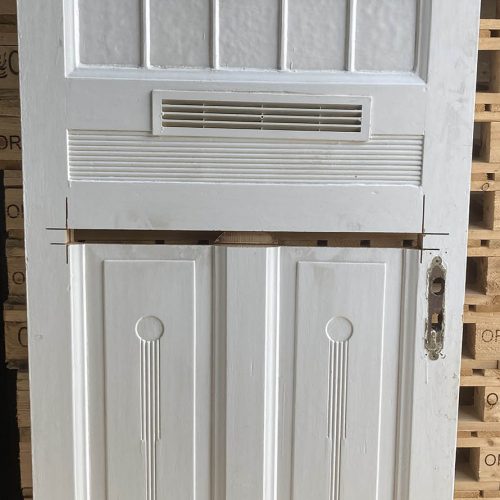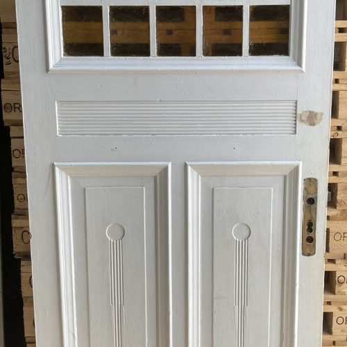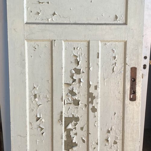 Zimmertür Nr. 546 Epoche: Jugendstil Material: Kiefernholz Aufteilung: 3 Kassetten Glas: Nein Fitschen / Türbänder: Links Höhe / Länge: 2165 mm Breite: 937 mm Stärke / Dicke: 40 mm Zustand / Beschreibung: Guter zustand, Farbe ein wenig gekratzt, 2 Vollholzkassetten mit Schnitzerei, im oberen drittel Original Glaseinsatz leider mit Farbe gestrichen sollte aber mit Beize gut abgehen. Gewicht: 50 kg Hier geht es zurück zur Türen Auswahl. VERSANDKOSTEN NACH ABSPRACHE/VEREINBARUNG. -
