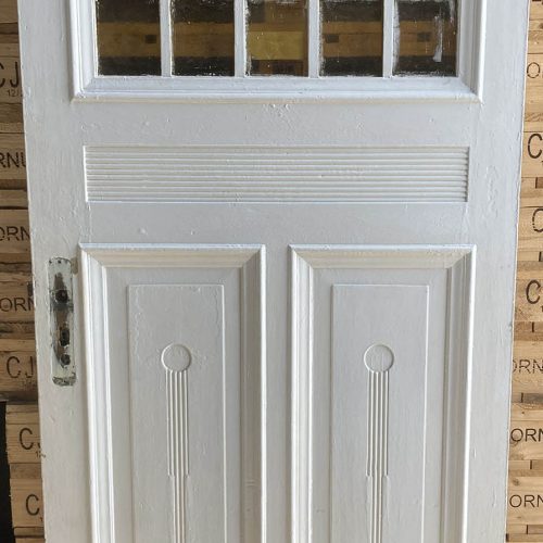 Zimmertür Nr. 557 Epoche: Jugendstil Material: Kiefernholz Aufteilung: 3 Kassetten Glas: Ja + Original Glaseinsatz Fitschen / Türbänder: Rechts Höhe / Länge: 2165 mm Breite: 930 mm Stärke / Dicke: 38 mm Zustand / Beschreibung: sehr guter zustand, im oberen drittel Aufteilung mit Original Glaseinsatz. Gewicht: 50 kg Hier geht es zurück zur Türen Auswahl. VERSANDKOSTEN NACH ABSPRACHE/VEREINBARUNG. -