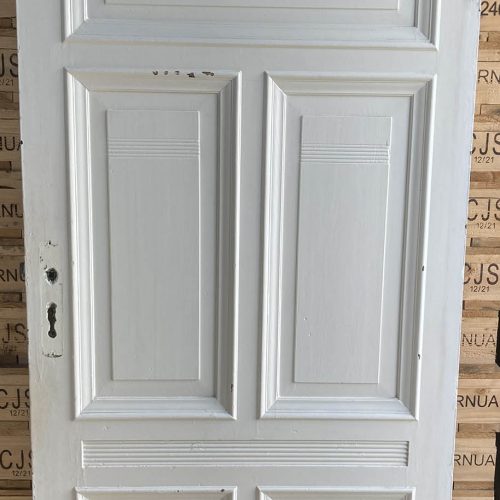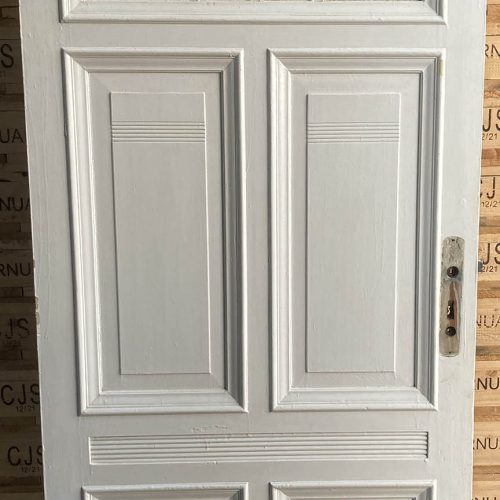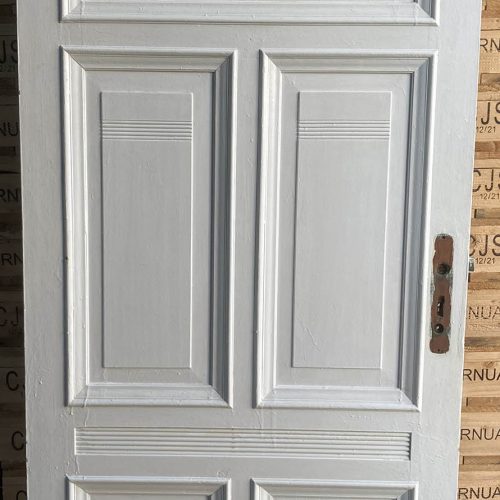 Zimmertür Nr. 491 Epoche: Gründerzeit Material: Kiefernholz Aufteilung: 6 Kassetten Glas: Ja Fitschen / Türbänder: Rechts Höhe / Länge: 2175 mm Breite: 960 mm Stärke / Dicke: 35 mm Zustand / Beschreibung: Guter zustand, Farbe Blättert ab, im oberen Aufteilung mit Glas. Gewicht: 50 kg Hier geht es zurück zur Türen Auswahl. VERSANDKOSTEN NACH ABSPRACHE/VEREINBARUNG. -