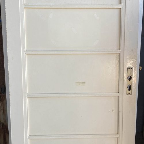 Zimmertür Nr. 570 Epoche: Jugendstil Material: Kiefernholz Aufteilung: 5 Kassetten Glas: Nein Fitschen / Türbänder: Links Höhe / Länge: 2155 mm Breite: 940 mm Stärke / Dicke: 40 mm Zustand / Beschreibung: Guter zustand im oberen drittel die Aufteilung mit Segmentbogen. Gewicht: 50 kg Hier geht es zurück zur Türen Auswahl. VERSANDKOSTEN NACH ABSPRACHE/VEREINBARUNG. -