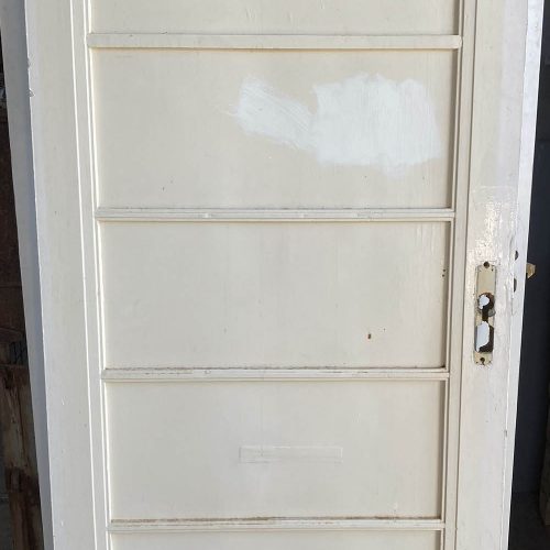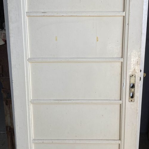 Zimmertür Nr. 569 Epoche: Jugendstil Material: Kiefernholz Aufteilung: 5 Kassetten Glas: Nein Fitschen / Türbänder: Rechts Höhe / Länge: 2170 mm Breite: 925 mm Stärke / Dicke: 40 mm Zustand / Beschreibung: Guter zustand im oberen drittel die Aufteilung mit Segmentbogen. Gewicht: 50 kg Hier geht es zurück zur Türen Auswahl. VERSANDKOSTEN NACH ABSPRACHE/VEREINBARUNG. -