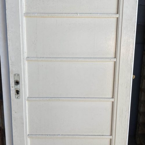 Zimmertür Nr. 603 Epoche: Bauhaus Material: Kiefernholz Aufteilung: 5 Kassetten Glas: Nein Fitschen / Türbänder: Rechts Höhe / Länge: 2075 mm Breite: 985 mm Stärke / Dicke: 45 mm Zustand / Beschreibung: Guter zustand Gewicht: 50 kg Hier geht es zurück zur Türen Auswahl. VERSANDKOSTEN NACH ABSPRACHE/VEREINBARUNG. -