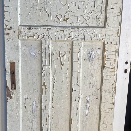 Zimmertür Nr. 600 aus einem Landhaus Epoche: Gründerzeit Material: Kiefernholz Aufteilung: 4 Kassetten Glas: Nein Fitschen / Türbänder: Rechts Höhe / Länge: 2010 mm Breite: 905 mm Stärke / Dicke: 36 mm Zustand: von der Rückseite ist diese Tür eine Blind Tür das heiß sie war in einer Nische oder als Wandschranktür verbaut Farbe Blätter ab am sonnten guter zustand. Gewicht: 30,00 kg hier geht es zurück zur Auswahl der Türen -