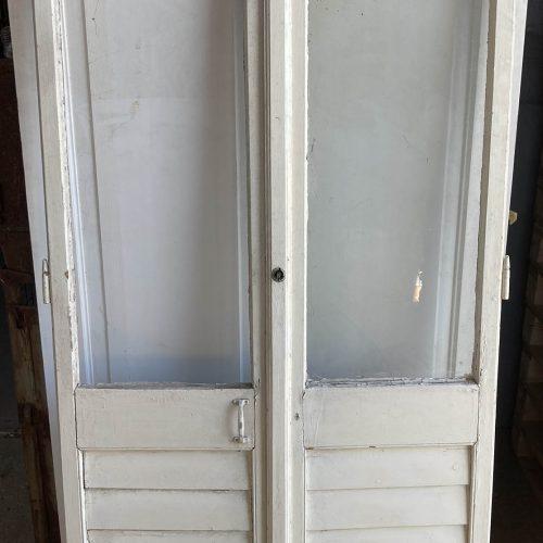 Doppeltür zum Balkon Nr. 602 Epoche: Gründerzeit Material: Kiefernholz Aufteilung: 4 Kassetten Gehflügel: Rechts öffnend Glas: Ja Höhe / Länge: 1900 mm Breite: 990 mm Stärke / Dicke: 40 mm Zustand: Farbe Blätter ab am sonnten guter zustand Gewicht: 70,00 kg VERSANDKOSTEN NACH ABSPRACHE/VEREINBARUNG. -
