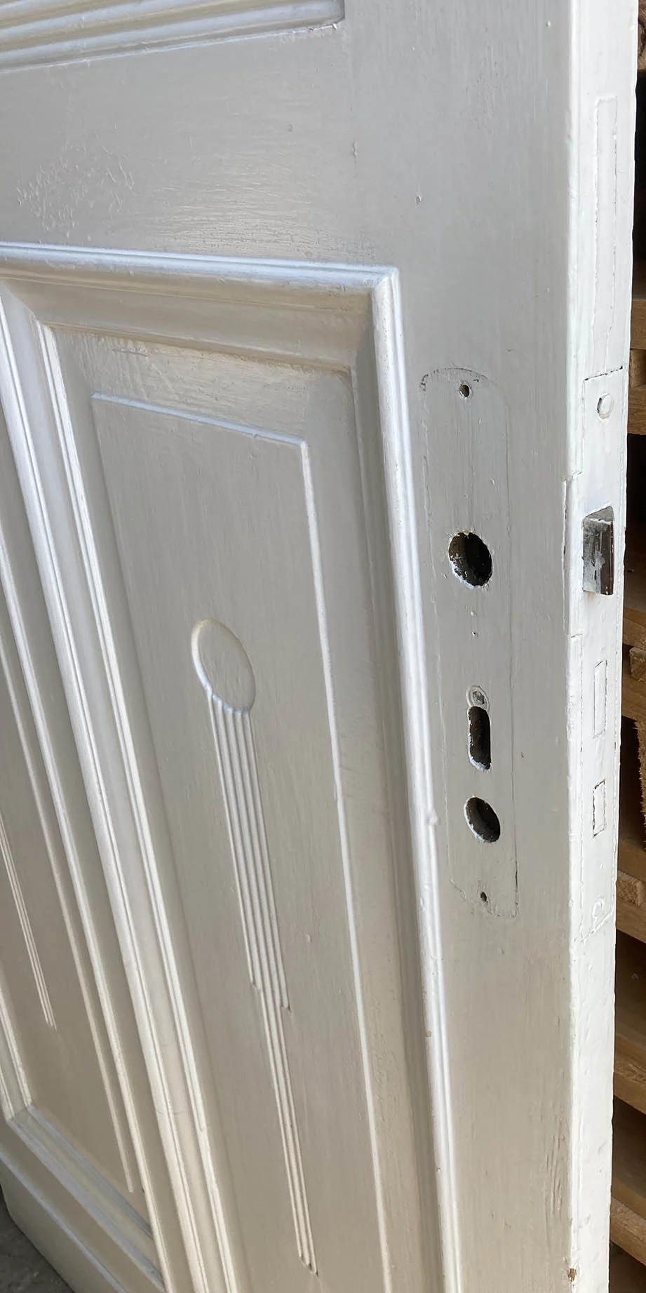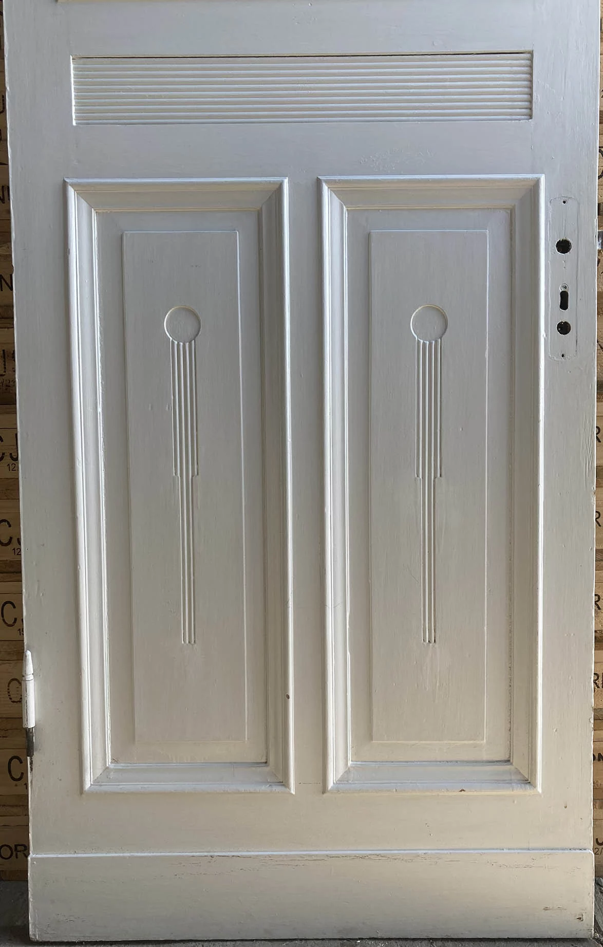 Zustand / Beschreibung: Guter zustand, Farbe ein wenig gekratzt, 2 Vollholzkassetten mit Schnitzerei, im oberen drittel Original Glaseinsatz leider mit Farbe gestrichen sollte aber mit Beize gut abgehen.