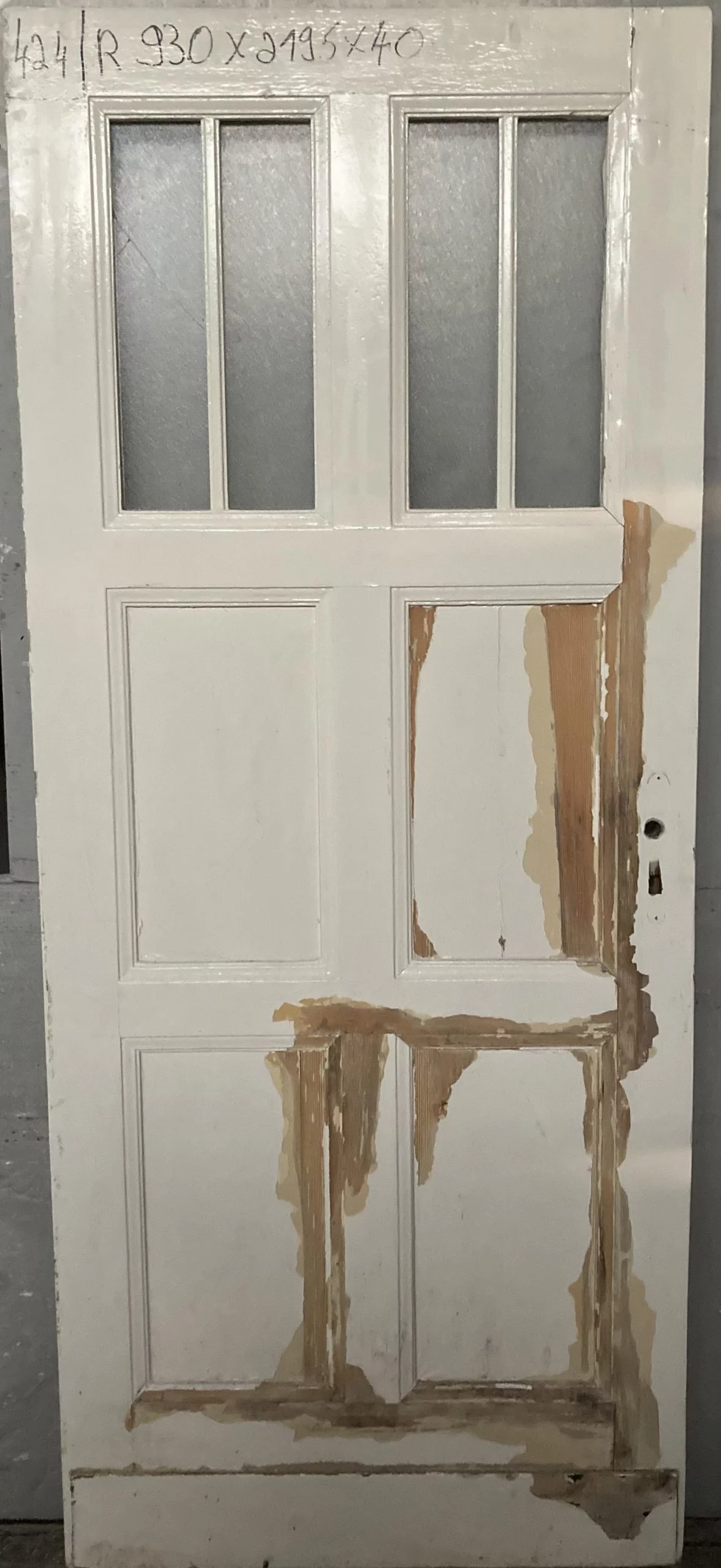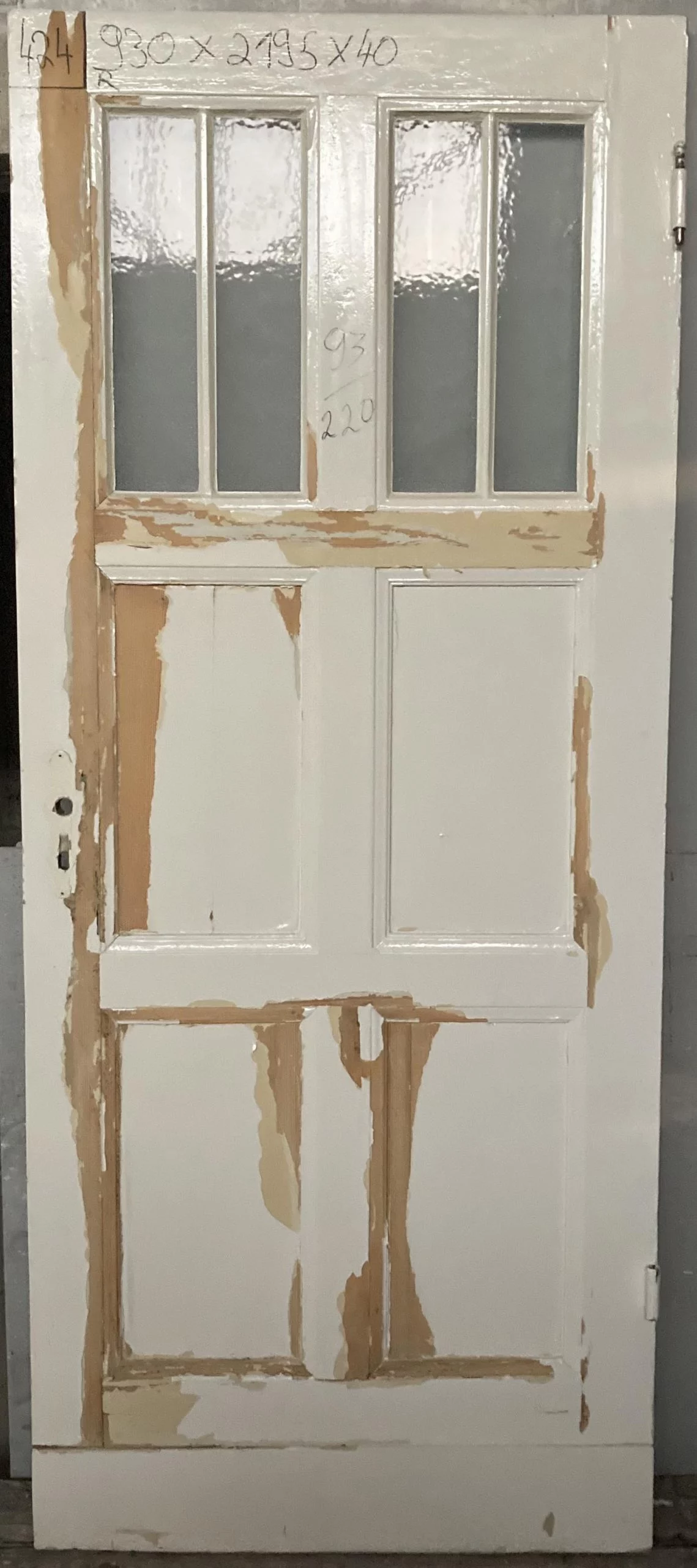 Zustand / Beschreibung: Guter zustand, Farbe Blättert ab, im oberen drittel Glaseinsatz mit vierer Aufteilung, vermutlich eine Küchentür aus der Belletage.