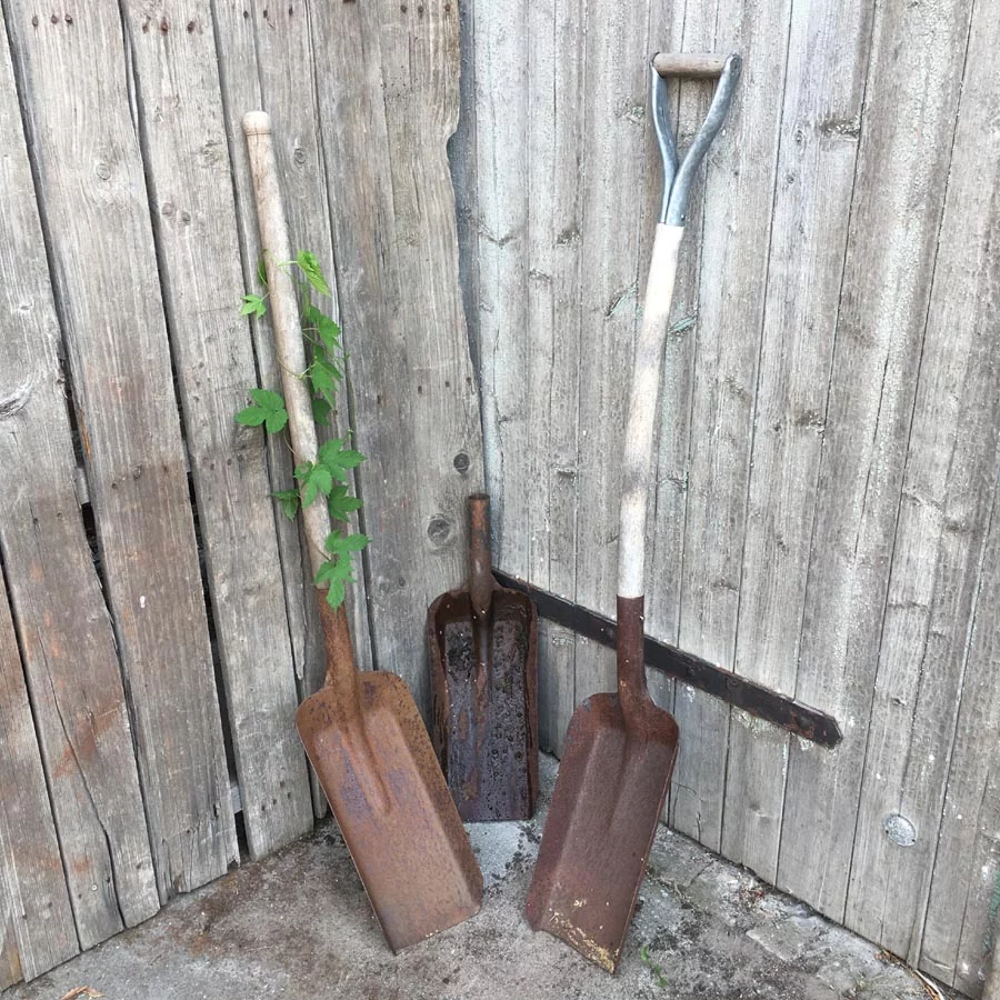 Konvolut Alte Kohlenschaufel mit Holzgriff Nr. 42
