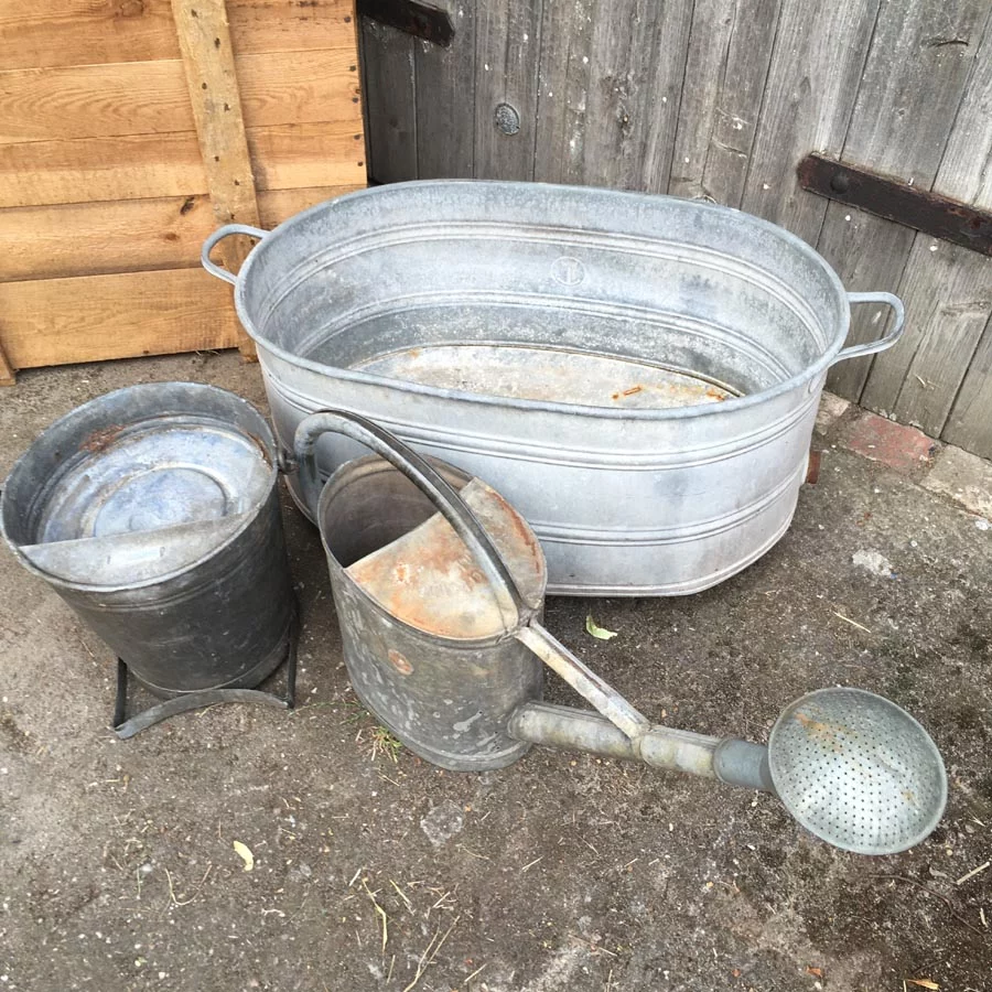 Konvolut Alte Zink Gießkanne / Garten Bechen Nr. 35