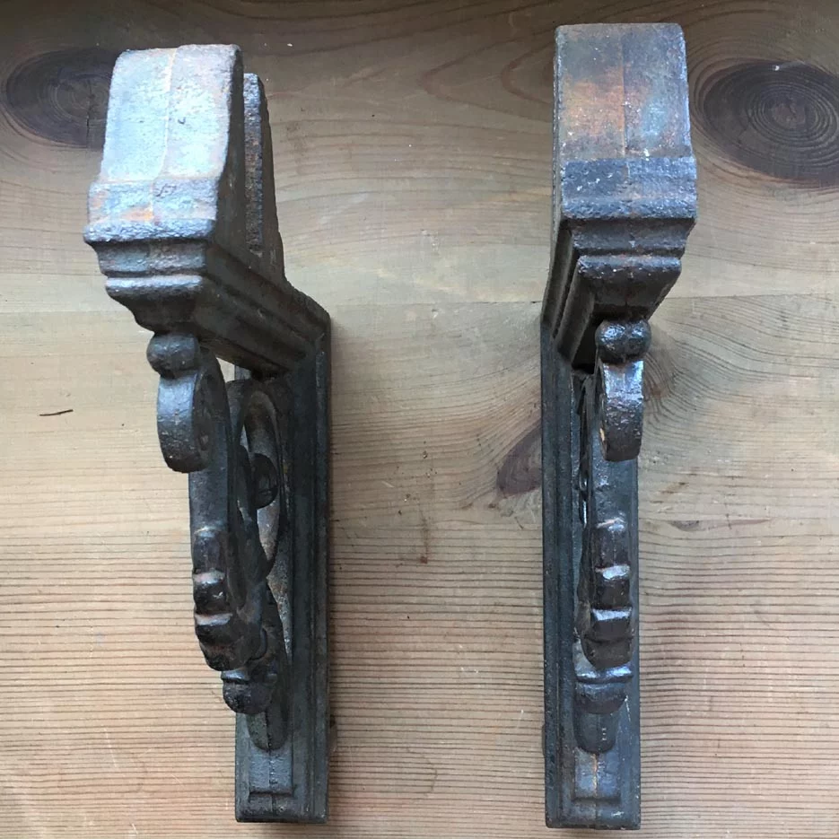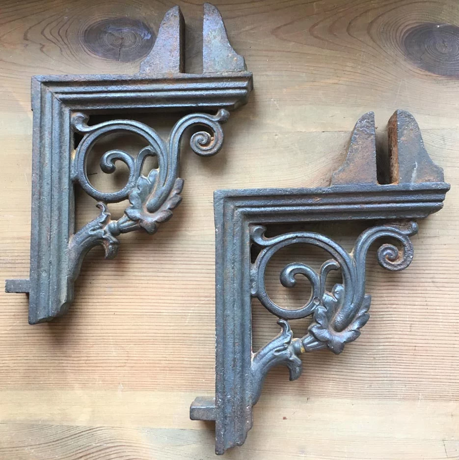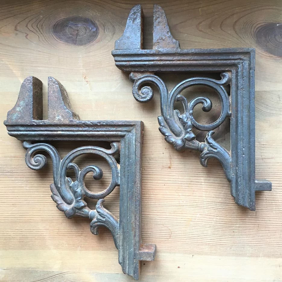 1 Paar (2 Stück) schön verzierte Winkel aus Gusseisen im Gründerzeit.