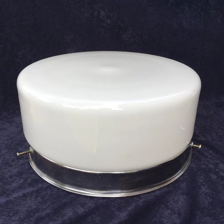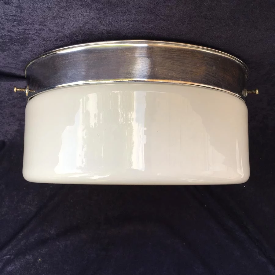 Antike Bauhaus Deckenlampe Nr. 10 mit Messing Schaft vernickelt oder verchromt, Kugelkopf Lampenschirm mit 3 Stellschrauben fixiert, im tadelloser zustand.
