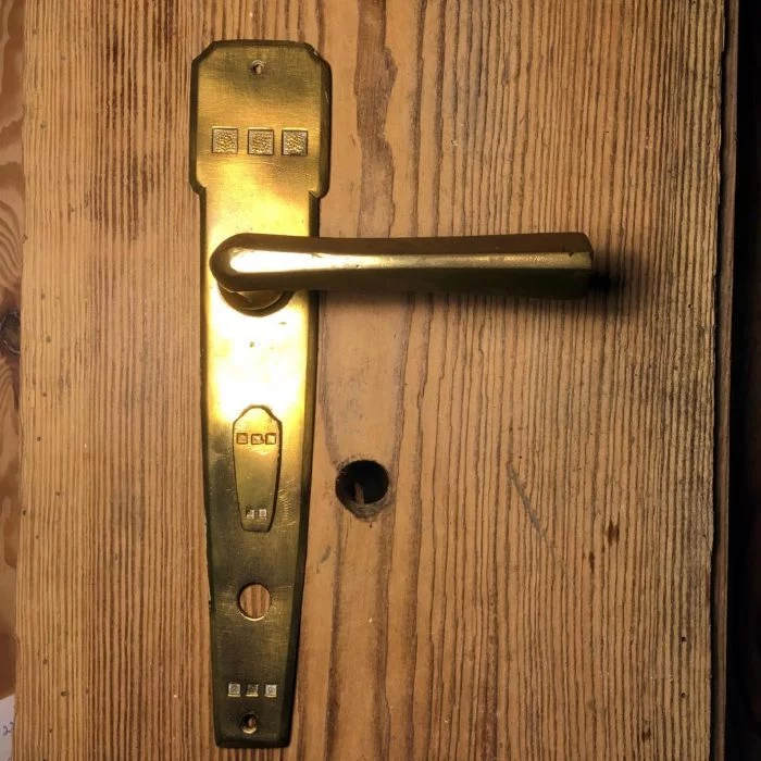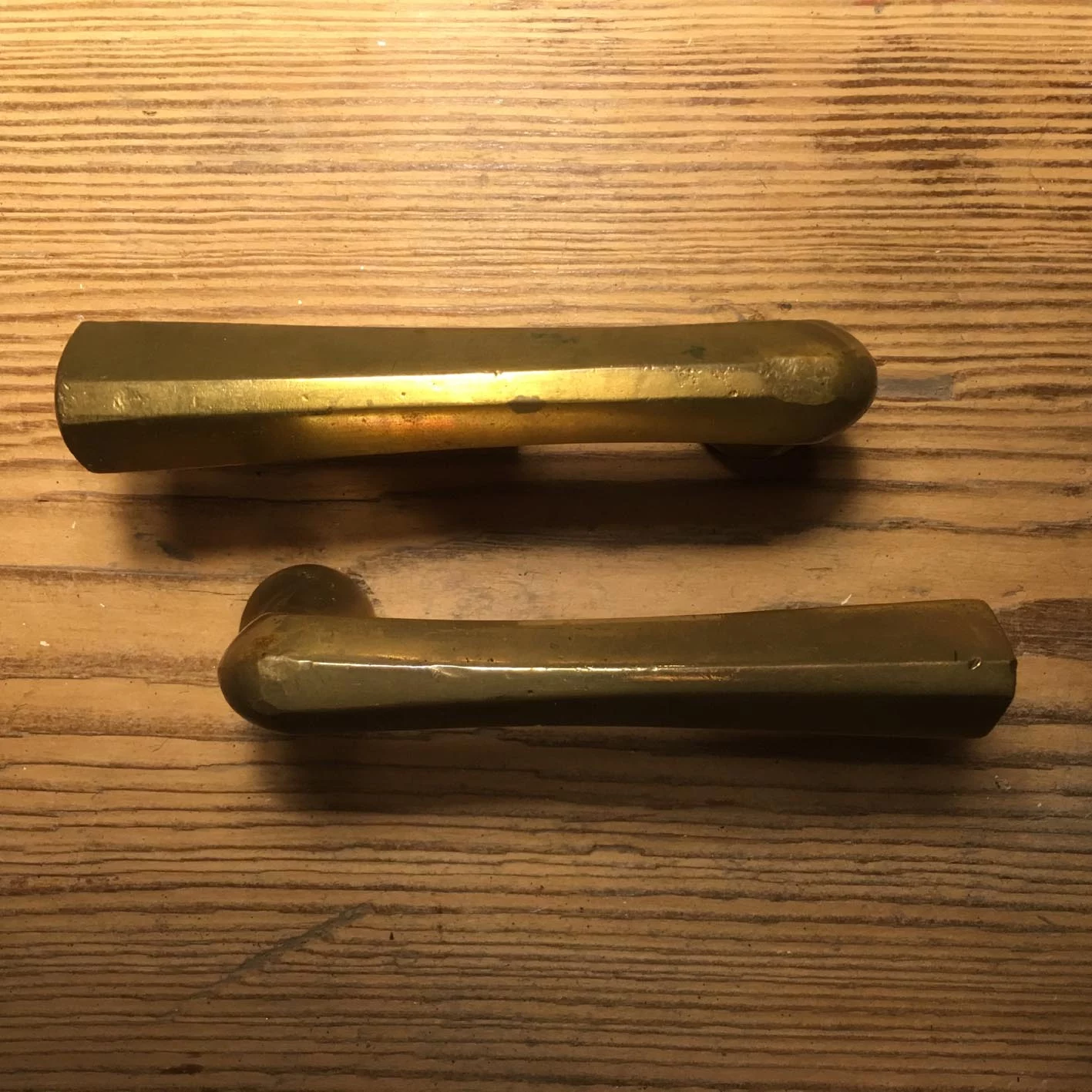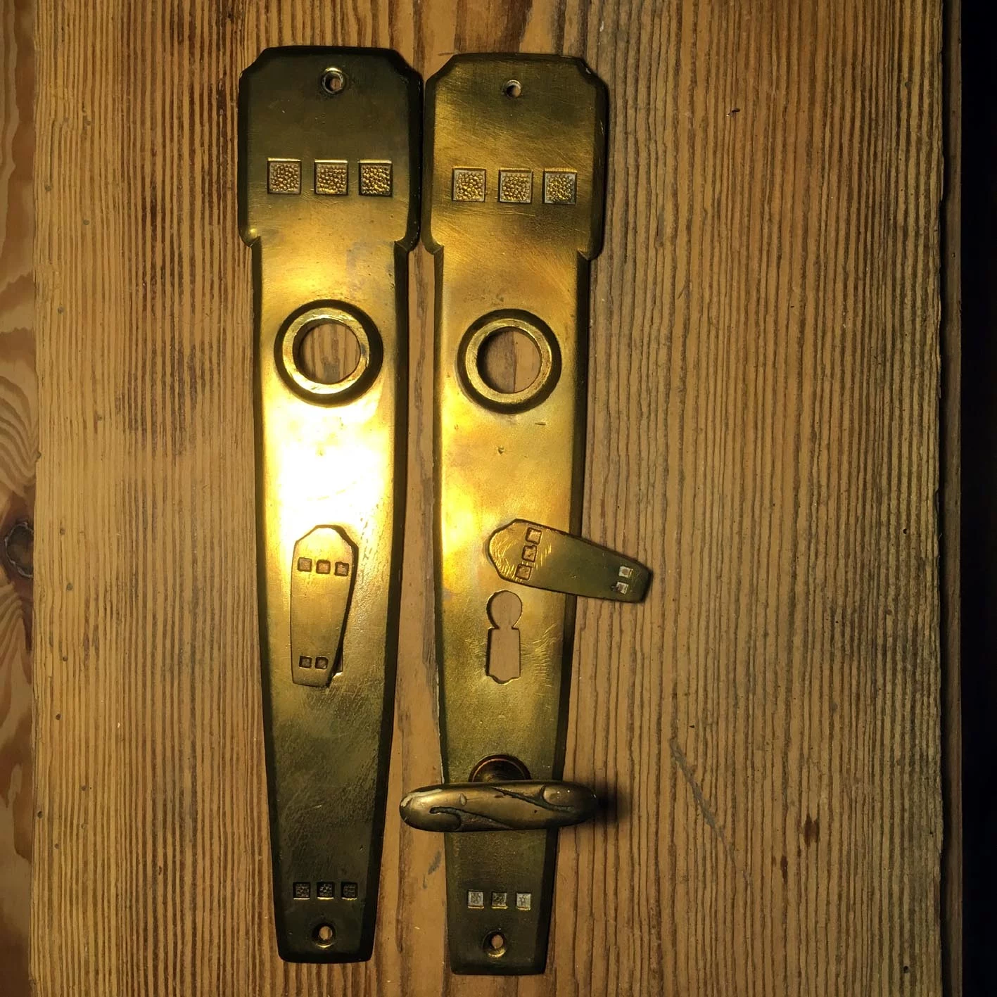 Sind Original Jugendstil Zimmertür Drückergarnituren aus Messingguss.