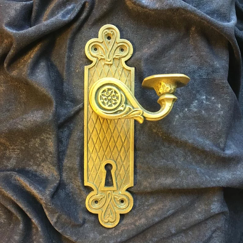 Langschild und Türgriff / Türdrücker aus Messing / Messingguss.
