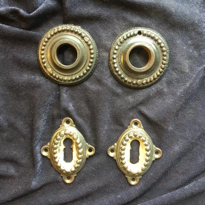 Oft ist Farbe oder der Original Überzug auf den Drückergarnitur vorhanden die wir noch nicht entfernt haben.