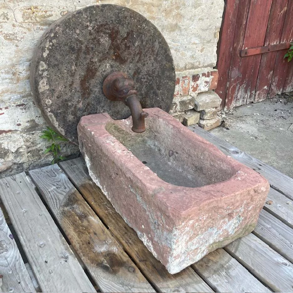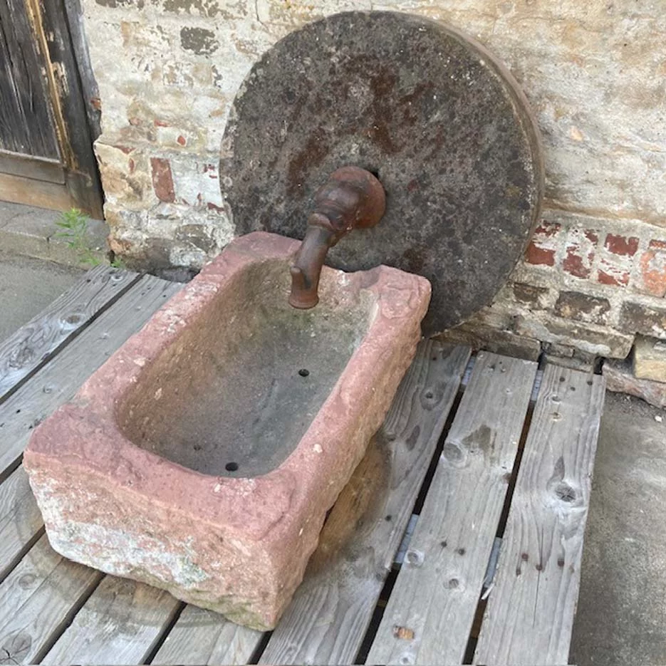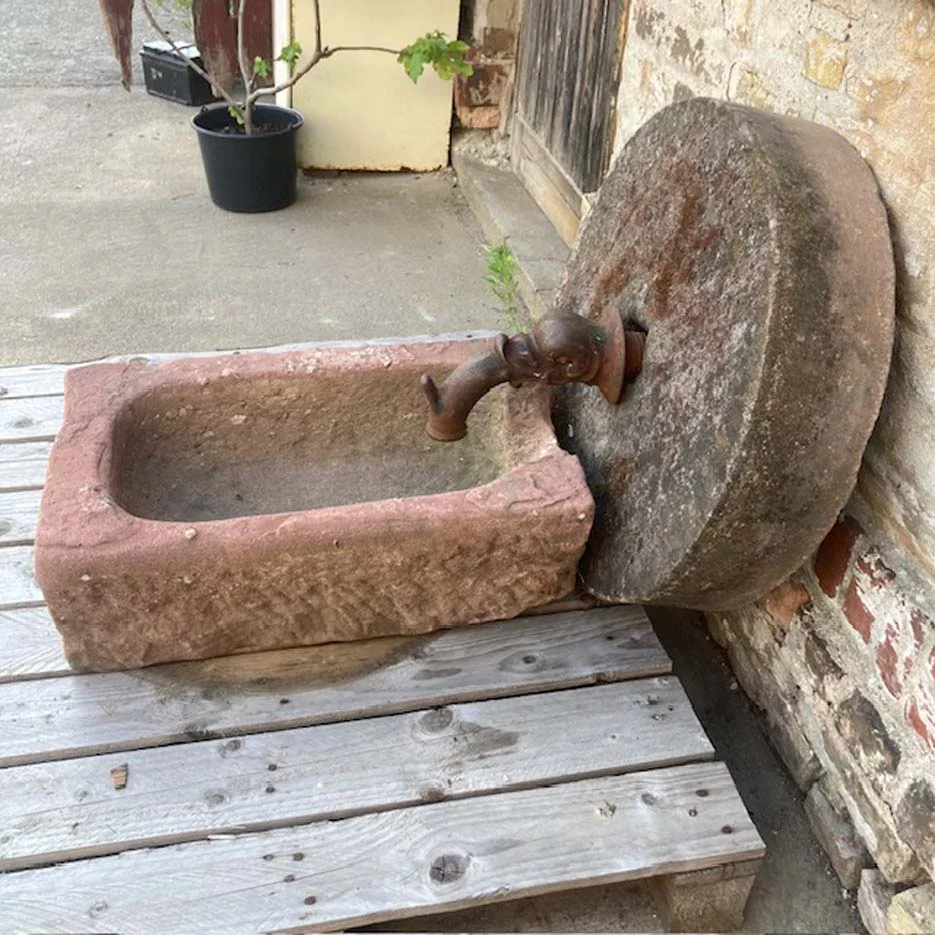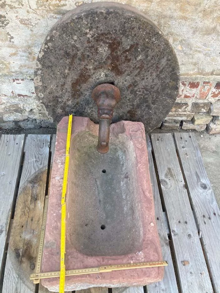 Trog 250,-€ Mühlstein 350,-€ und Original Biedermeier Wasserspeier 275,- €