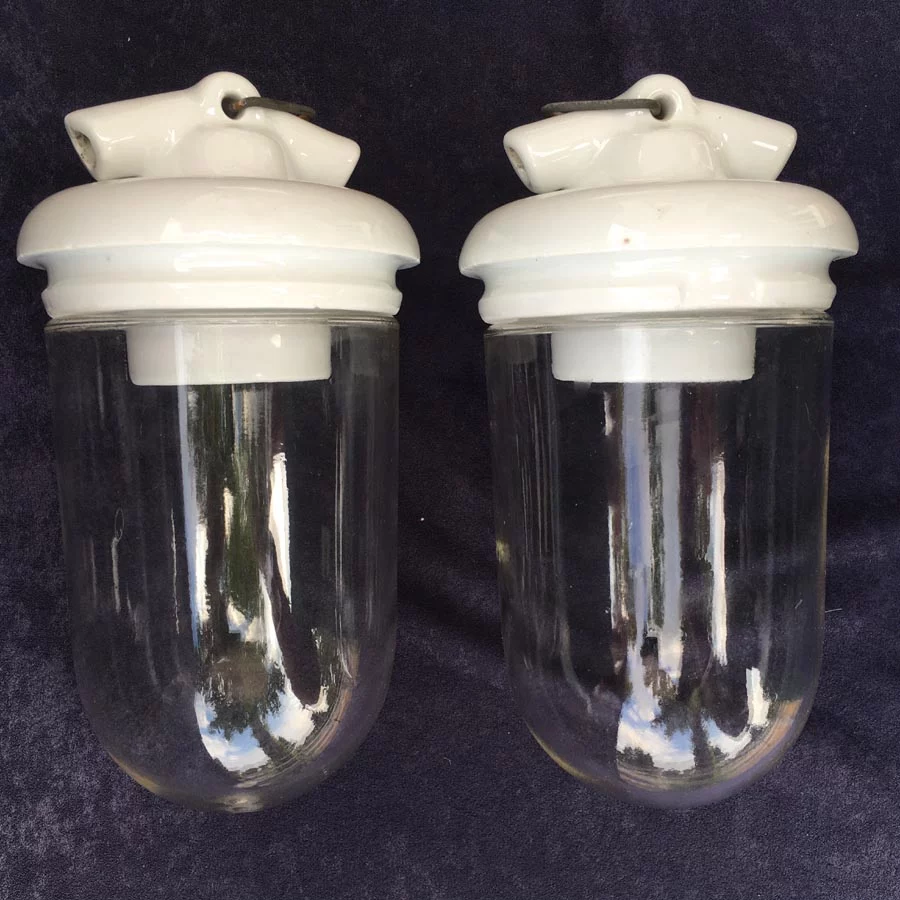 Deckenlampe Nr. 14 aus Porzellan mit Glaszylinder