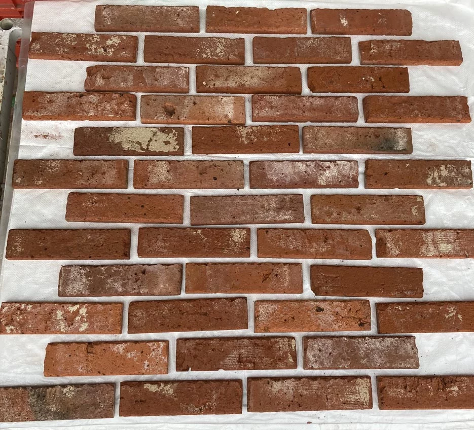 Unsere Ziegelriemchen werden aus Original alten / historischen Handstrich Reichsformat Ziegelsteinen geschnitten.