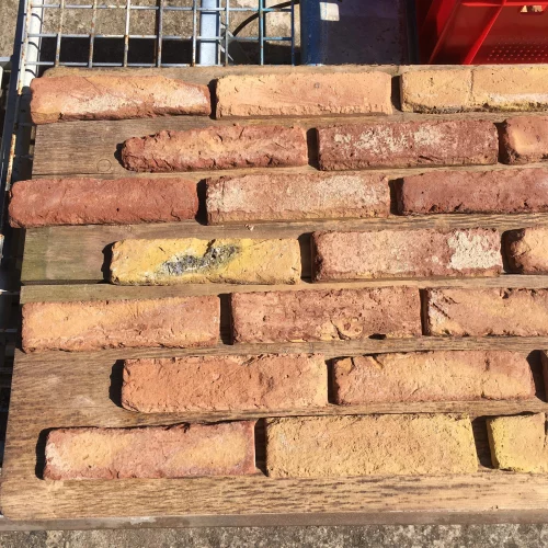 Unsere Ziegelriemchen werden aus Original alten / historischen Handstrich Reichsformat Ziegelsteinen geschnitten.